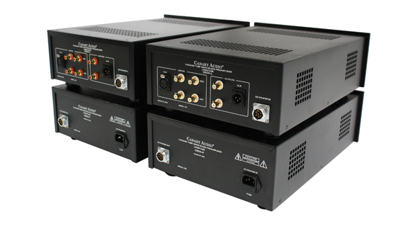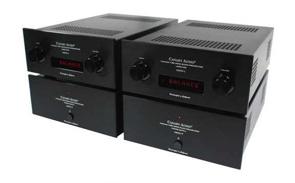 Dual mono (left and right channel seperated) line stages featuring (6) 6SN7 vacuum tubes.